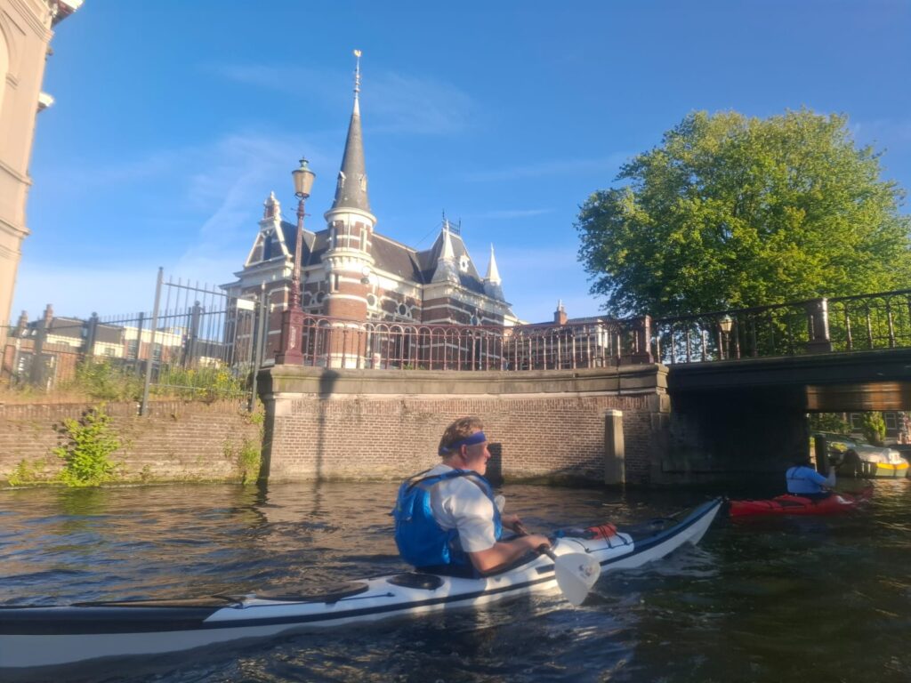 Het is een schitterende dag vandaag. Een beetje te warm gekleed, ik voorzie een hitteberoerte, laden we onze vier kajaks op en rijden we naar Haarlem. Er staan zo’n dertig kajakkers klaar voor een prachtige route over de Spaarne en de Haarlemse grachten. Het is een zeer gevarieerde tour met veel te zien aan de kant. Een aanrader, Haarlem verdient een plek op de tochtenkalender!