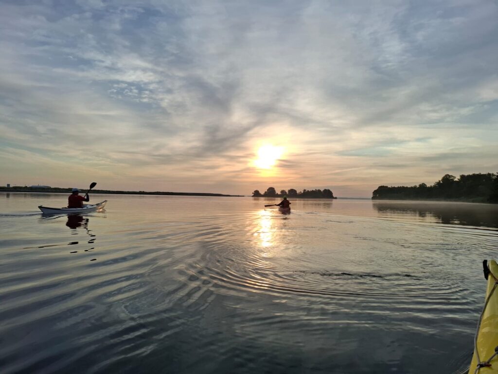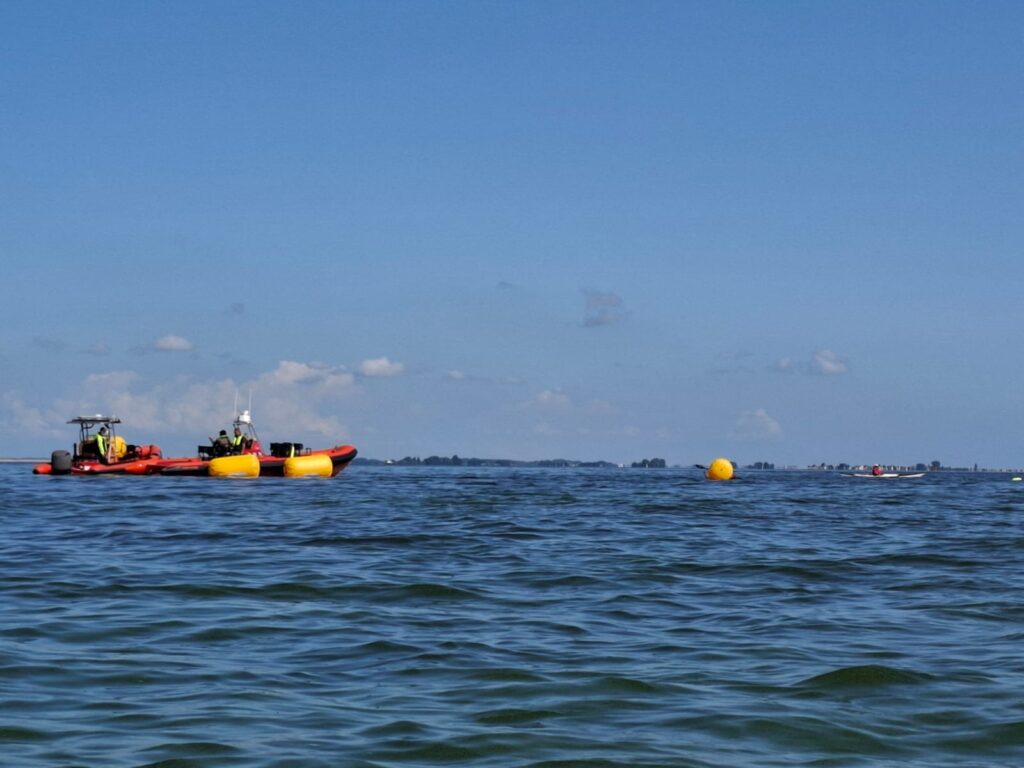 Acht van onze kajakkers hielden afgelopen zaterdag een oogje in het zeil bij het openwaterzwemevenement ‘Rondje Pampus’. De briefing was om 7:30 uur op Pampus, dus hadden ze om 6:30 uur afgesproken bij KOIJ om die kant op te peddelen.
