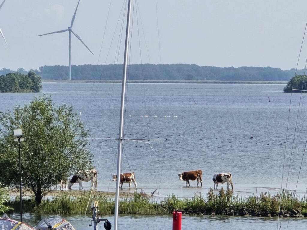 Later werden we ook getrakteerd op een Lemsteraak die door de matige wind moeite had de zeilen bol te krijgen. Aangeland op het strandje klimmen we op de dijk voor een bakkie leut met zicht op het Muiderslot aka “Amsterdam Castle”, De koeien die in het water stonden te pootjebaden hebben we maar even gefotografeerd om voorkomen dat mensen straks denken dat we hallucineren.