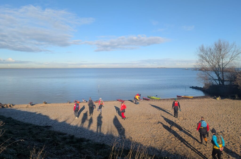 Bij de steiger besloten twee kajakkers te testen hoe het is om met deze temperatuur te water te raken. Uiteraard wel ingepakt in droogpakken en met voldoende hulp standby. Ik had eerder bij het strandje tijdens het uitstappen al in het water gestaan en dat was okay. Maar van de mannen begreep ik dat vooral het hoofd het flink moest afzien omdat dat natuurlijk niet in het droogpak zit. Beter niet omdonderen dus.