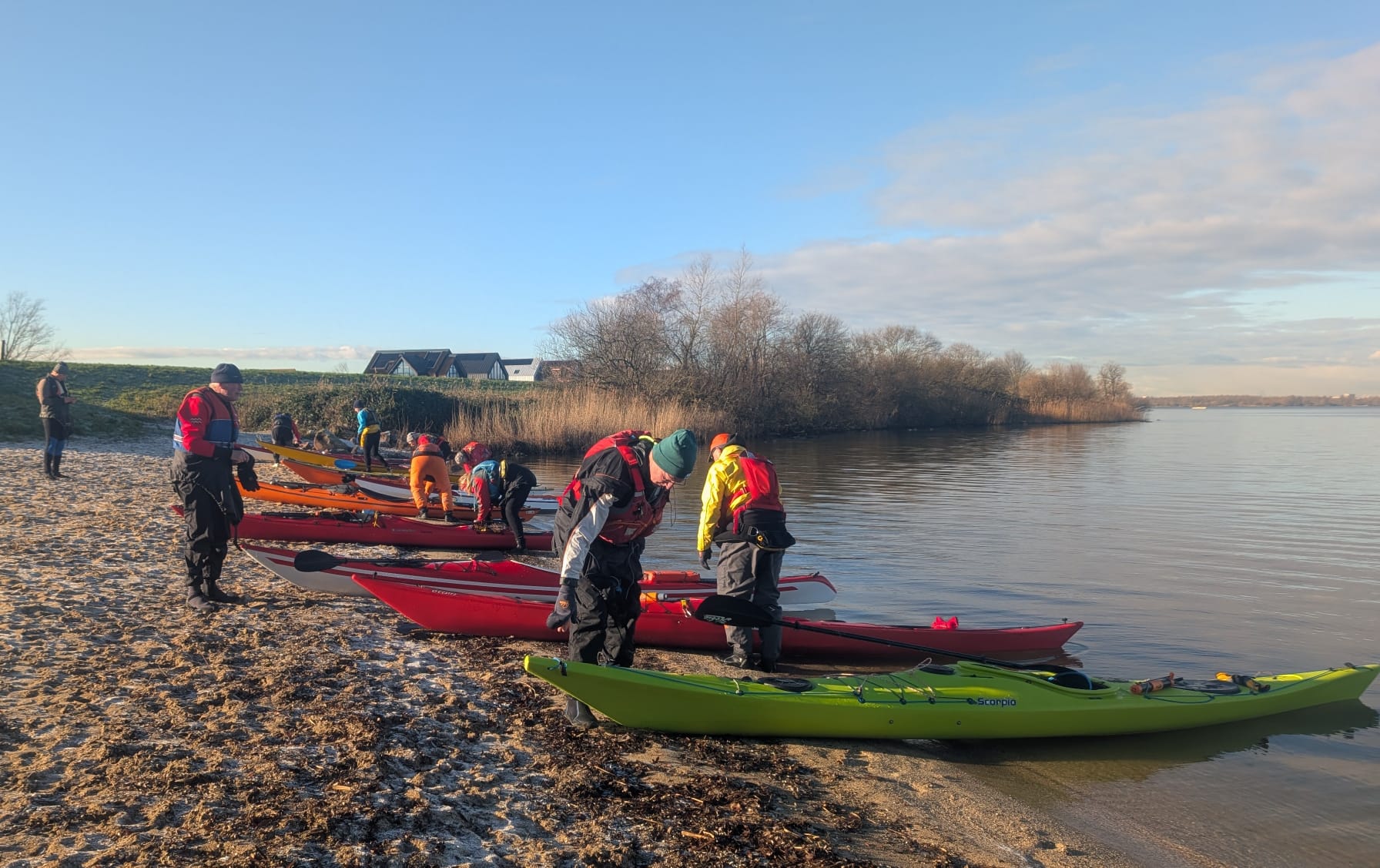 Bij de steiger besloten twee kajakkers te testen hoe het is om met deze temperatuur te water te raken. Uiteraard wel ingepakt in droogpakken en met voldoende hulp standby. Ik had eerder bij het strandje tijdens het uitstappen al in het water gestaan en dat was okay. Maar van de mannen begreep ik dat vooral het hoofd het flink moest afzien omdat dat natuurlijk niet in het droogpak zit. Beter niet omdonderen dus.